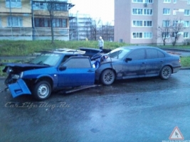 Izskatās, ka nabaga VAZ2108 ticis starp āmuru un veseri, jeb diviem BMW E39.