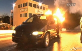 Abām automašīnām iebūvēti lidaparātu spēka agregāti: Dodge Caravan konstruktori izvēlējušies helikoptera dzinēju, bet Chevrolet pikapam iemontēta lidmašīnas turbīna.