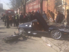 Ķīnā avarējis viens no pasaules retākajiem superauto - Spyker C8 Spyder. Nenoskaidrotu iemeslu dēļ Spyker vadītājs zaudējis kontroli pār automašīnu, dārgais spēkrats aizķēris autobusa pieturu un mopēdu un skrējienu beidzis uz ietves.