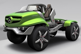 Divvietīgajam transportlīdzeklim ir izturīgs alumīnija rāmis, neliela vaļēja kabīne, kas atgādina pašus pirmos Unimog un masīvs priekšējais buferis, kas savos izlocītajos stūros ietvēris priekšējos starmešus. Konstrukcija papildināta ar nelielu vējstiklu, kas pasargās no vēja un masīvs balsts kabīnes centrā, kas būtu jāgādā par drošību apgāšanās gadījumā. Kabīnes aizmugurē iekārtota gluži vai simboliska kravas novietne-platforma, kas pāriet kompozītmateriālu aizmugurējās daļas pārsegā. Jāatzīmē arī īpaši rūpīgi veidotie riteņu diski piecu spieķu dizainā un pamatīga izmēra Mercedes zvaigzne radiatora restes centrā.