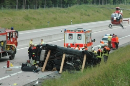Negadījums noticis brīdī, kad kravas automobilis, veicot apdzīšanas manevru izbraucis kreisajā joslā. Lai izvairītos no sadursmes, apvidnieks pagriezis pa labi un aizķēris otru kravas automobili, tad apmetis kūleni un apstājies uz jumta tikai pēc 70 metriem. Porsche vadītājs un pasažieris ar smagām traumām nonāca slimnīcā, turklāt vienu no vīriešiem no vraka izdevās atbrīvot tikai pēc stundas. Pēc ekspertu vērtējuma, materiālo zaudējumu apmērs ir 120 000 eiro.