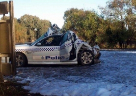 Holden SS Commodore ir Austrālijas policijas patruļauto, kas attiecīgi aprīkots, maksā aptuveni $55 000. Kad likumsargs kārtējo reizi izkāpa, lai pārbaudītu dokumentus, policijas automašīnu no aizmugures taranēja pilnā ātrumā braucošs kravas vilcējs ar puspiekabi.