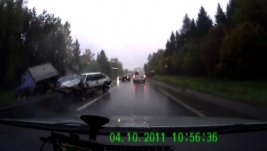 varbūt viņš izvairījās no sadursmes ar to kurš mēģināja ielīst iekšā - vismaz tā izskatās, ka nogulēja bremzēšanu un kad nebija kur likties tad rāva apdzīt, bet tur priekšā gazele.
