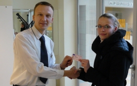 Foto: Agita Bulle saņem B kategorijas (ar 78.kodu) tiesības auto vadīšanai ar automātisko ātrumkārbu, Liepāja, 2012.gada 10.februāris.