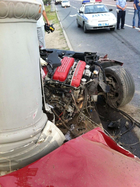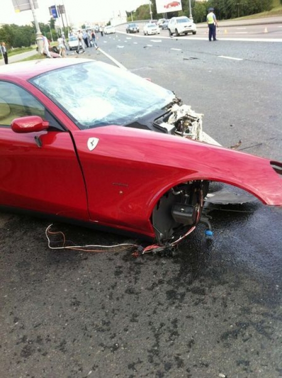Maskavā notikusi avārija, kuras rezultātā iznīcināts aptuveni 300 000 dolāru vērts Ferrari 612 Scaglietti. Notikuma aculiecinieks pastāstījis, ka braucošā Ferrari priekšā uz ielas negaidot izskrējis gājējs. Lai neuzbrauktu cilvēkam, Ferrari vadītājs pagriezis stūri un ietriecies apgaismes stabā. Trieciena rezultātā automašīna pārrauta uz pusēm (abas daļas šķir vismaz 50 m) un ir praktiski norakstāma. Ferrari vadītājs nogādāts slimnīcā ar smadzeņu satricinājumu, bet pārgalvīgais gājējs nav cietis.