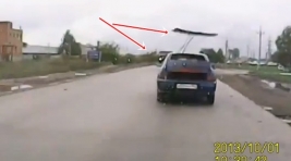 Tā tik ir kvalitāte - pretimbraucoša kravas auto radīta gaisa turbulence izrauj VAZ aizmugures stiklu.