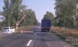 Kurš te neskatās spoguļos? Automašīna, kurā uzstādīts videoreģistrators uzsāk apdzīšanu, taču pēc dažiem metriem tās sānos ietriecas cits automobilis.