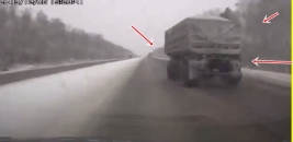 Kraviniekam atkabinās piekabe un sekojošais automobilis tikai ar grūtībām izvairās no sadursmes. Savukārt kravinieka vadītājs "astes" pazušanu nemaz nemana.