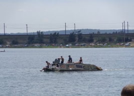 Krievu armijas bruņutransportieris (BTR)paredzēts, lai nogādātu kaujas vietā karavīrus, taču kāds uzņēmējs tam izdomājis citu, daudz humānāku pielietojumu - vizināšanos ar kaujas mašīnu pa vietējo ūdenskrātuvi. Atrakcijas cena - 300 rubļu (6,4 eiro) par pusstundu.
