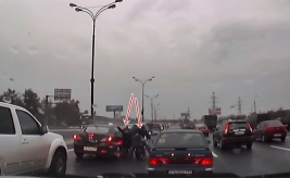 Divi laupītāji uz Maskavas apvedceļa piebrauc pie Mazda automobiļa un izmantojot neaizslēgtās durvis, apzog automašīnas īpašnieku.