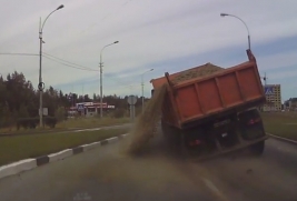 Šoferis uzbrauc uz apmales vai automobilim gadās kāds tehnisks defekts, taču krava pēkšņi sasveras un kravinieks iebrauc blakus joslā.