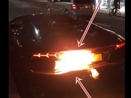 Aculiecinieks nofilmējis brīdi, kad darbinot 700 ZS jaudīgo Lamborghini Aventador automašīna negaidot aizdegas.