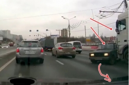 Mīļi un draudzīgi - kravas auto apgriež neuzmanīgu VAZ braucēju pretējā virzienā.