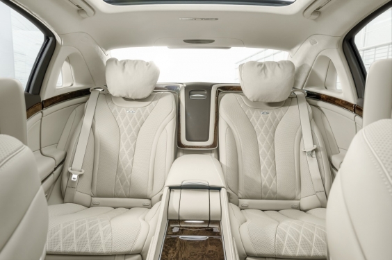 To garantē salīdzinājumā ar S klasi vēl vairāk pilnveidotā piekare un īpaša sastāva Dunlop riepas, gaumīgs un bagātīgi ar koku un nappa ādu izdarināts salons, komfortabli sēdekļi, atvāžami galdiņi, dzērienu turētāji ar dzesēšanas un termosa funkciju, 1540 vatu, 24 skaļruņu Burmeister-3D skaņu sistēma. Aprīkojumā arī Magic-Sky-Control panorāmas jumts ar pakāpeniskās gaismas caurlaidības noregulēšanas iespēju un divas jaunas funkcijas: salona spogulī iemontēts mikrofons, kas uztver šofera teikto un caur skaņu sistēmas skaļruņiem nogādā aizmugurē sēdošajām, automātiski noregulējot tembru un skaļumu komfortablā līmenī, kā arī Technologie Wideband Speech (saukta arī HD Voice), kas nodrošina izcilu sakaru kvalitāti runājot pa telefonu.