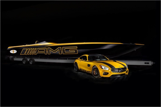 Abus transportlīdzekļus vieno dzelteni melnā krāsu kombinācija un AMG logotipi, taču tehnika atšķiras kardināli: 15, 24 m garo un 2,44 m plato sporta laivu uz priekšu dzen divi V8 Mercury motori ar kopējo jaudu 1572 ZS, savukārt AMG GT iebūvēts 4,0 litru V8 motors, kas attīsta 510 ZS un 650 Nm. Ūdens transporta maksimālais ātrums ir 217 km/h, bet Mercedes AMG kupeja spēj sasniegt 310 km/h.