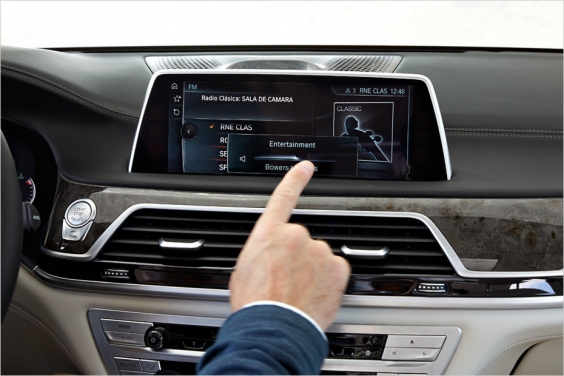 Vadītājam un pasažieriem patiks jaunākās paaudzes iDrive multimediju komplekss ar skārienjutīgu ekrānu un žestu vadību. Veicot noteiktas manipulācijas ar pirkstiem ekrāna priekšā, iespējams regulēt audio iekārtas skaļumu, atbildēt uz telefona zvaniem vai virzīties pa multimediju iekārtas izvēlnēm. Salonā būs arī automātiskā klimatkontrole ar gaisa jonizēšanas funkciju, septiņu collu planšete, kas iebūvēta aizmugures rindas centrālajā roku balstā un nodrošina visu informācijas-izklaides sistēmu kontroli, savukārt automašīnas novietošana stāvvietā vai garāžā tagad iespējama arī no attāluma – vadītājam atliek nospiest pogu uz atslēgu breloka un automātiskā parkošanās palīgsistēma visu izdarīs patstāvīgi.