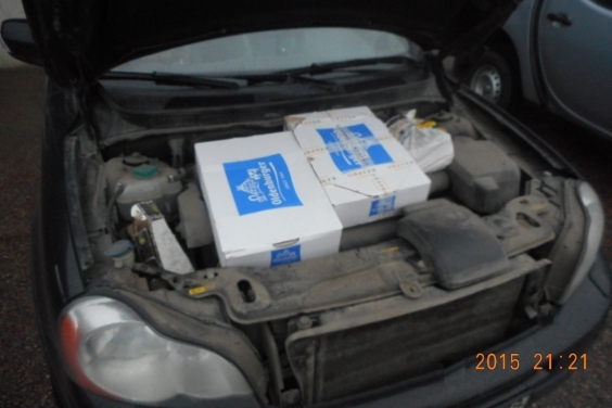 Robežpunkta "Брусничное" muitas darbinieki, pārbaudot kāda sava tautieša automašīnu, atklājuši lielu daudzumu pārtikas produktu, kas bija paslēpti dažādās vietās – motortelpā, bagāžas nodalījuma tehnoloģiskajās nišās un pat rezerves ritenī. Sastādītais protokols liecina, ka pēterburdzietis paslēpis 33 iepakojumus gaļas produktu (kopējais svars 21,46 kg), 13 iepakojumus ar zivju produkciju (7,92 kg) un 11 iepakojumus piena produktu (33, 44 kg). Kontrabandas kopējais svars – 62,82 kg.