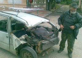 Nejauša aculiecinieka uzņemti attēli un video liecina par to, cik maz šim vīram nozīmē paša dzīvība – ieskatoties vērīgāk, manāms, ka sadauzītā auto salonā atrodas gāzes balons, kura ventilim piestiprinātā caurule nozūd kaut kur zem motora pārsega. Jautāts, vai auto brauc ar gāzi, vīrs, kurš bijis pamatīgi iestiprinājis ar sīvo, ar tikai krievu cilvēkam vien saprotamu, sulīgu vārdu licis noprast, ka tā viņš arī ir.