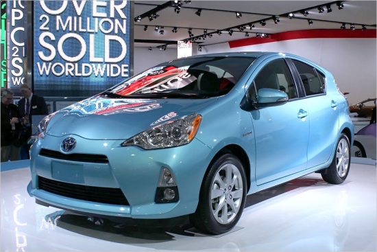 Toyota Prius C. Četrus metrus garais piecvietīgais Toyota hibrīds aprīkots ar hibrīdiekārtu, kas sastāv no 1,5 litru 74 ZS benzīna motora un elektromotora ar 61 ZS jaudu. Automašīnas niķeļa metālhidrīda baterija ļauj nelielu atstatumu (1,6 km) veikt elektriskā režīmā, savukārt ar vienu litru degvielas Prius C spēs nobraukt aptuveni 35 km. Eiropā Prius C netiks tirgots, tā vietā Toyota piedāvās nedaudz kompaktāko Yaris Hybrid.