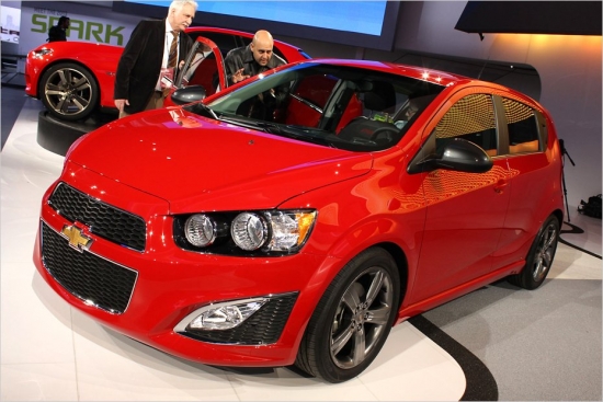 Chevrolet Sonic RS. Eiropā Chevrolet mazulis pazīstams kā Aveo, savā dzimtenē – kā Sonic. Detroitas izstādē tiek prezentēts Sonic saimes topmodelis RS, kam piešķirts 1,4 litru 140 ZS turbo benzīnnieks, ko varēs diriģēt ar sešu pakāpju mehāniskās vai automātiskās kārbas palīdzību.Komentāri:
