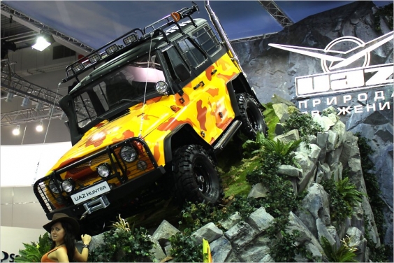UAZ Patriot. UAZ pieder pie vecākajiem Krievijas autobūves uzņēmumiem, kas dibināts 1942.gadā. Sākumā Uļjanovskas rūpnīca ražoja kravas automašīnas, bet vēlāk pievērsās arī apvidus tehnikai. Maskavas autoizstādē UAZ stendā skatāms kompakts krosovers Patriot, kura vienkāršo dizainu ražotājs cenšas atdzīvināt ar skaistām meitenēm un džungļu tematiku.