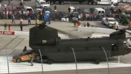 Pagājušo svētdien notikušajās Nascar sacīkstēs Texas Motor Speedway ovālā drošības auto loma bija uzticēta Chevrolet Camaro SS. Tas nebūtu nekas neparasts, ja ne fakts, ka Safety Car ieradās no… gaisa, pareizāk milzīga ASV Jūras spēku helikoptera CH-47 Chinook vēderā. Kas attiecas uz sacensībām, tad galvenais favorīts Džimijs Džonsons piedzīvoja avāriju un, finišējot 38.vietā, zaudēja vairāk nekā 100 punktus no sava pārsvara. Neskatoties uz to, lai kļūtu par čempionu, Džonsonam atlikušajos divos posmos pietiek divreiz finišēt 4.vietā.