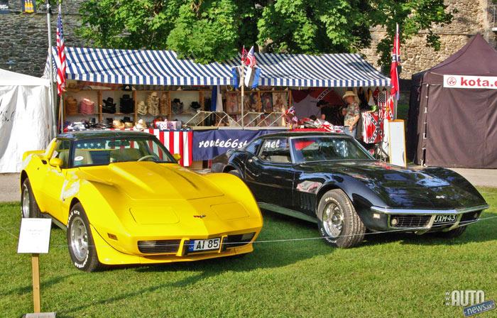 Šogad pils iekšienē bija izstādītas arī divas Latvijas mašīnas. Koši dzeltenā "Corvette" un zilganais "Camaro"