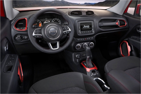 Renegade ir 17-22 cm klīrenss (atkarīgs no versijas), 16,17 vai 18 collu riteņi, piecvietīgs salons un bagāžas nodalījums ar 350-869 litru ietilpību. Automobilis aprīkots ar jumta lūku un noņemamu jumta sekciju, kuras daļas var noglabāt bagāžniekā. Salonā būs multimediju sistēma ar 5 vai 6,5 collu ekrānu, mērinstrumentu panelis ar divām apaļām skalām un 7 collu informācijas ekrānu, uz priekšu nolokāms blakussēdētāja sēdeklis (ļaus pārvadāt īpaši garus priekšmetus) un elektriskā stāvbremze.